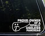 Proud Owner Of A Totally Useless Pancreas – 8-3/4″ x 3-1/2″ – Vinyl Die Cut Decal/ Bumper Sticker For Windows, Cars, Trucks, Laptops, Etc.