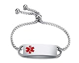 PJ Free Engraving Stainless Steel Medical Alert Identification ID Tag Adjustable Bracelet for Women