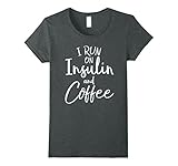 - I run on insulin & coffee shirt funny diabetes awareness T-Shirt. This hilarious tee shows your really like a lot of gourmet coffee & sarcasm! Your love of the diabetic cause will be on display at college or university. Wear it for yoga workouts with yoga pants!