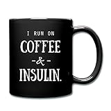 #healthyliving Spreadshirt Diabetes I Run On Coffee & Insulin Full Color Mug, black