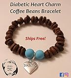 #healthyliving Diabetes Diabetic Heart Charm Coffee Bean Bracelet – Real Coffee Beans Bracelet w/Diabetic Heart Charm highlighted by Blue Beads – Fun Gift